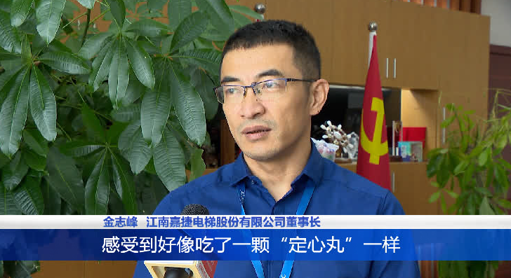 江南嘉捷電梯股份有限公司董事長(zhǎng)金志峰說,“三個(gè)不變”讓我們民營企業(yè)家感受到好像吃了一顆“定心丸”一樣。我相信未來我們很多的民營企業(yè)家會(huì)有更強(qiáng)的信心去做好、做大、做強(qiáng)民營經(jīng)濟(jì)。