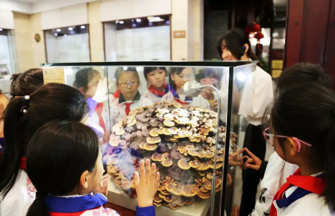 講解員為大家介紹中藥的儲(chǔ)存和分類,大家認(rèn)真地聽講~