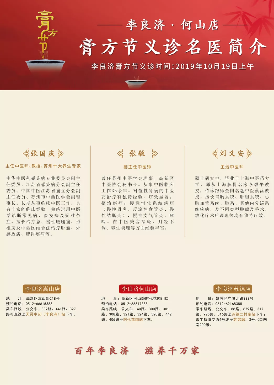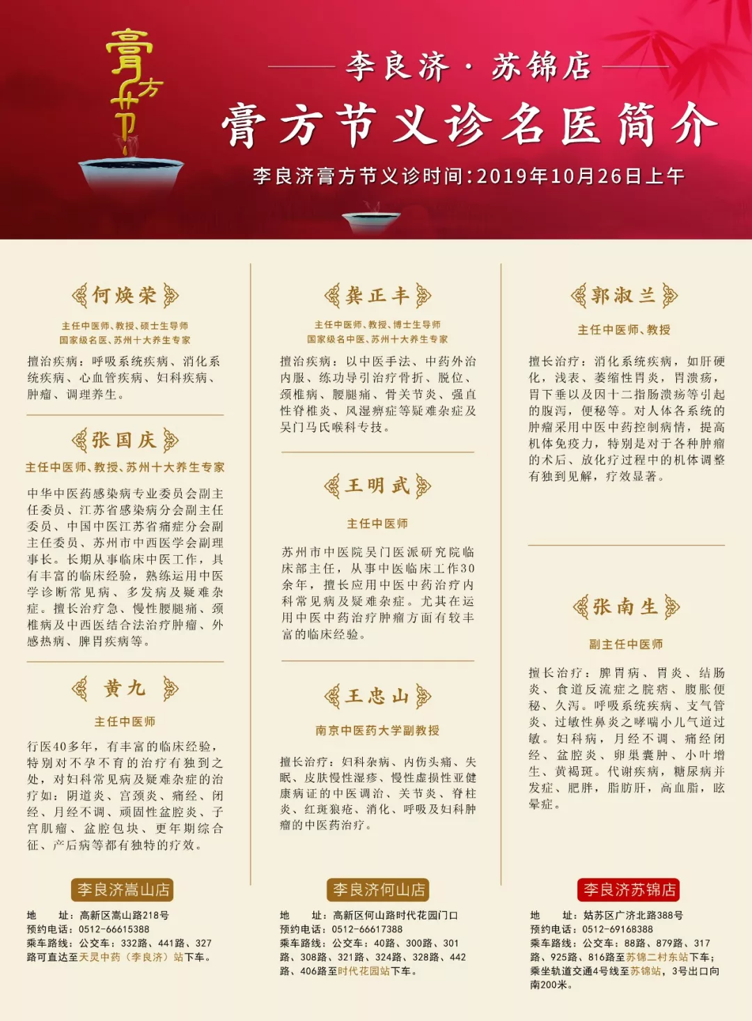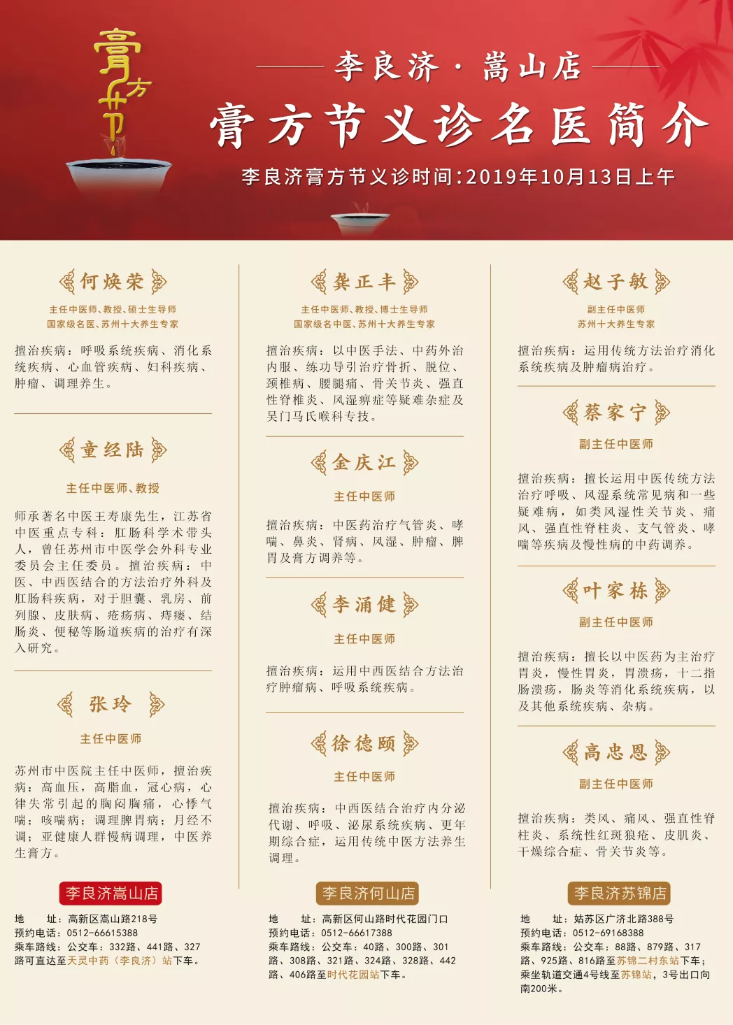 李良濟(jì)第18屆膏方節(jié)將于2019年10月13日拉開帷幕,屆時將邀請多名專家,現(xiàn)場為廣大市民切脈辨證獻(xiàn)方。
