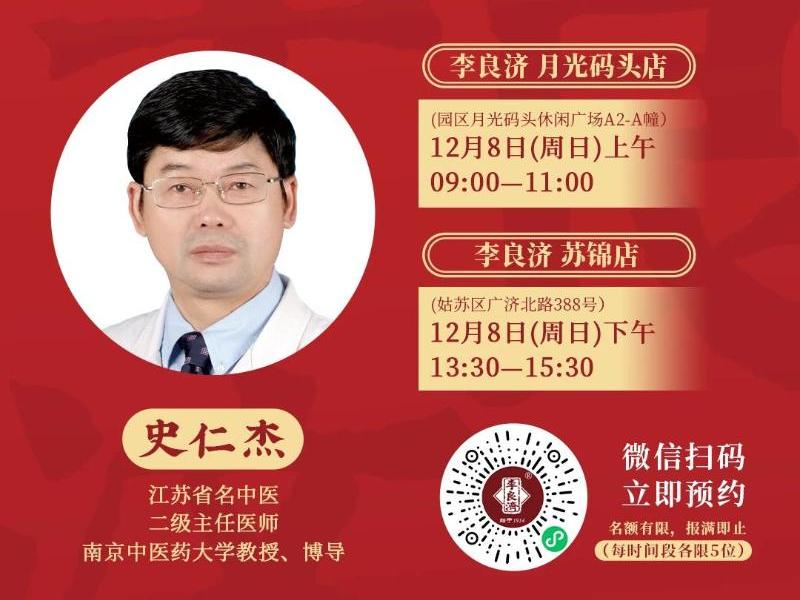 省名醫(yī)膏方義診丨12月8日,江蘇省名中醫(yī)肛腸科主任史仁杰醫(yī)生,在李良濟(jì)開啟義診!