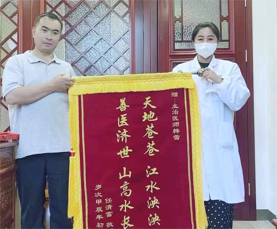 韓雪醫(yī)生針?biāo)幗Y(jié)合效果好,患者贈(zèng)送錦旗表感謝!