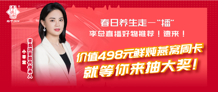 李總視頻號直播來啦!4月15日18:30超多大獎抽不停,更有價值498元鮮燉燕窩