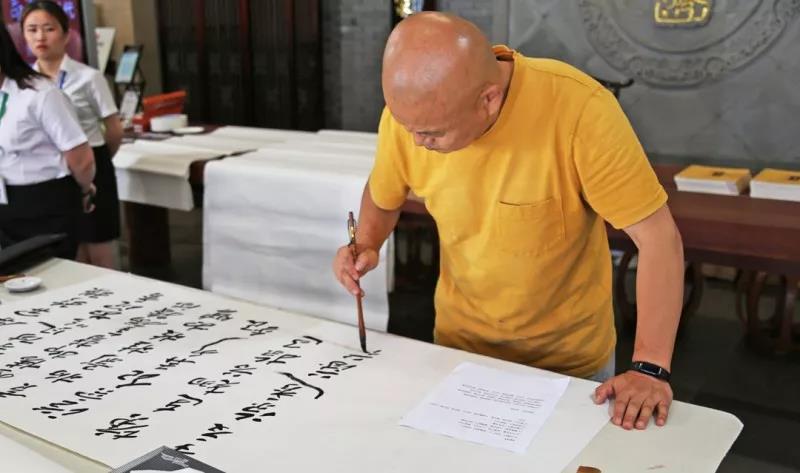 7月14日,為紀(jì)念李時(shí)珍誕辰500周年,李良濟(jì)攜手中國(guó)書法家協(xié)會(huì)中央國(guó)家機(jī)關(guān)分會(huì)舉辦一場(chǎng)主題為“書寫新時(shí)代”的大型書法活動(dòng)。中國(guó)書法家協(xié)會(huì)中央國(guó)家機(jī)關(guān)分會(huì)志愿者服務(wù)團(tuán)的10位書法家結(jié)合中藥元素進(jìn)行了一次別開生面的創(chuàng)作。墨香藥香氤氳匯合,帶來了濃濃的文化韻味。