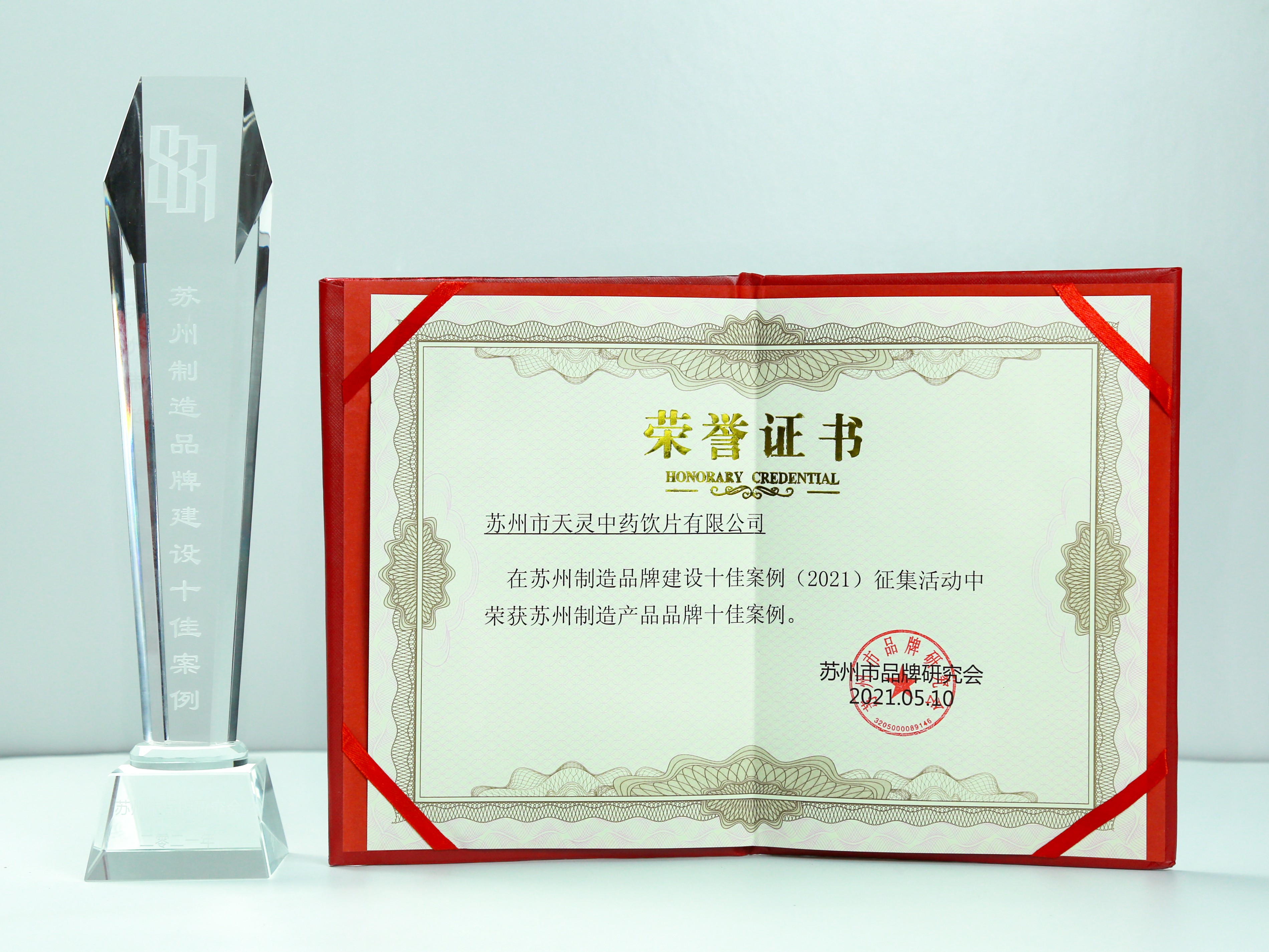 蘇州天靈中藥憑借百年的品牌實(shí)力榮獲“蘇州制造產(chǎn)品品牌十佳案例”獎(jiǎng)